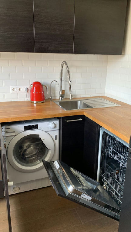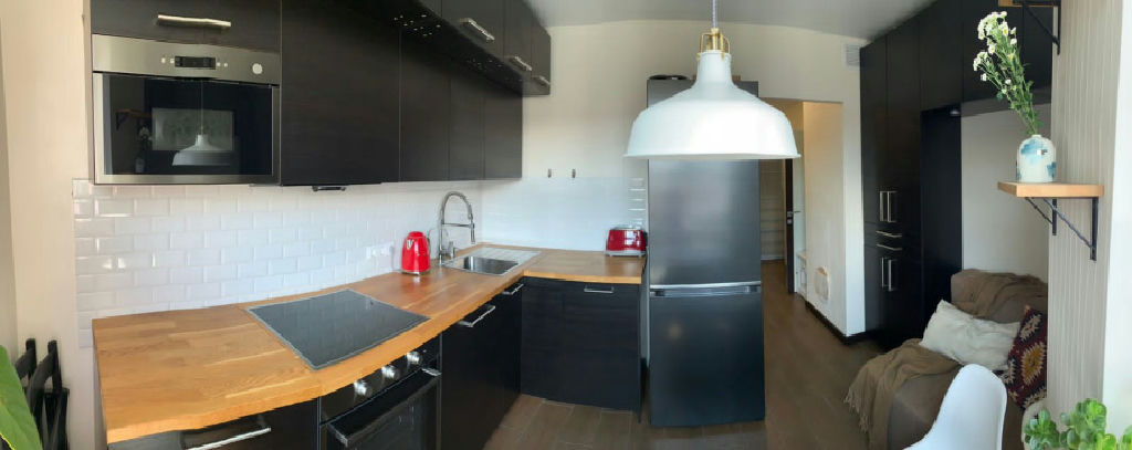 - Кухня Ikea, со встроенной техникой (микроволновка, стиральная машина, посудомоечная машина, вытяжка, духовой шкаф и варочная поверхность)